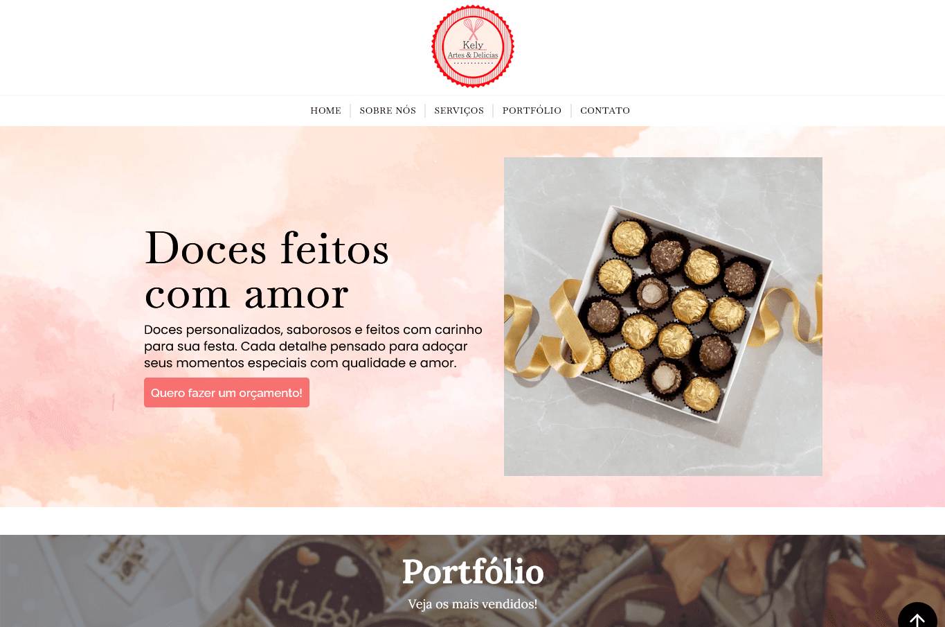 Uma landing page responsiva para apresentar os serviços de doces personalizados da Kely.